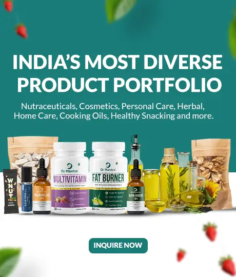 Dr Mantra is a leading manufacturer and exporter of Nutraceuticals, Herbal Products, Cosmetics, and Healthy Snacking solutions. We also specialize in producing a comprehensive range of Face Care, Body Care, Skin Care, Hair Care, Home Care, and numerous other wellness and personal care products offering end-to-end support from formulation, final manufacturing to exporting. ...